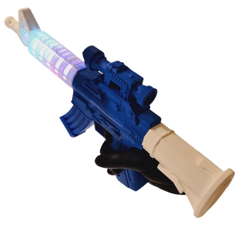 یکی از بارزترین ویژگیهای این مسلسل الکترونیکی، وجود 8 افکت صدای متفاوت است. هر بار که کودک ماشه اسباببازی را فشار میدهد، صدایی نزدیک به واقعیت از بلندگو پخش میشود؛ مثل صدای شلیک مسلسل، شلیک تکتیر، صدای شارژ مجدد، صدای انفجار و چند افکت متنوع دیگر که نقش پررنگی در افزایش جذابیت و هیجان بازی دارند. این ویژگی باعث میشود کودک حس فوقالعادهای از یک بازی پلیسی یا جنگی پیدا کند.