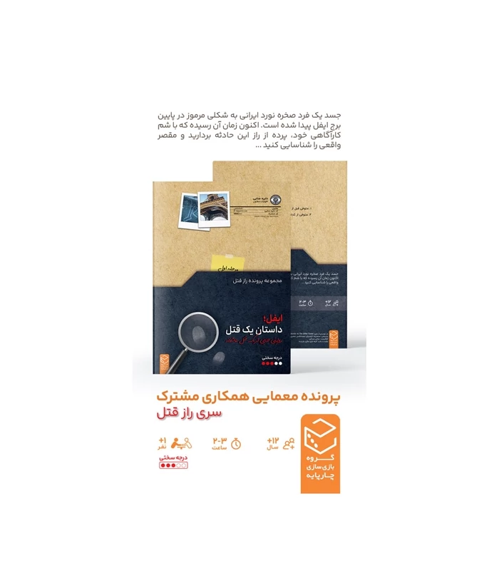 بازی ایرانی پرونده معمایی ایفل: داستان یک قتل از جمله بازیهای معمایی و فکری ایرانی است که توسط گروه چارپایه طراحی و تولید شده است. این بازی به صورت گروهی قابل اجرا بوده و تجربهای منحصر به فرد از حل معماهای جنایی ارائه میدهد. بازیکنان باید با استفاده از تواناییهای کارآگاهی خود و تحلیل شواهد، راز یک قتل مرموز را کشف کنند.