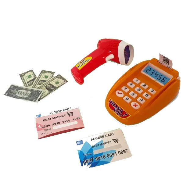 استفاده از ابزارهایی مانند بارکدخوان، محصولات کوچک و پولها باعث تقویت هماهنگی دست و چشم میشود و مهارتهای حرکتی ظریف کودک را بهبود میبخشد.