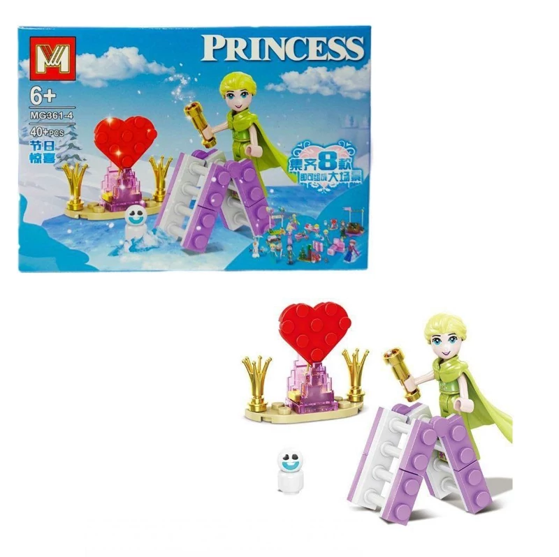 لگو فروزن پرنسس یخی برند mg کد ۳۶۱ شامل مجموعه کاملی از شخصیت های داستان این کارتون جذاب میباشد که هر کدام از این مجموعه دارای فیگور مخصوص به خود و قسمتی از شهر و خانه را شامل میشود.