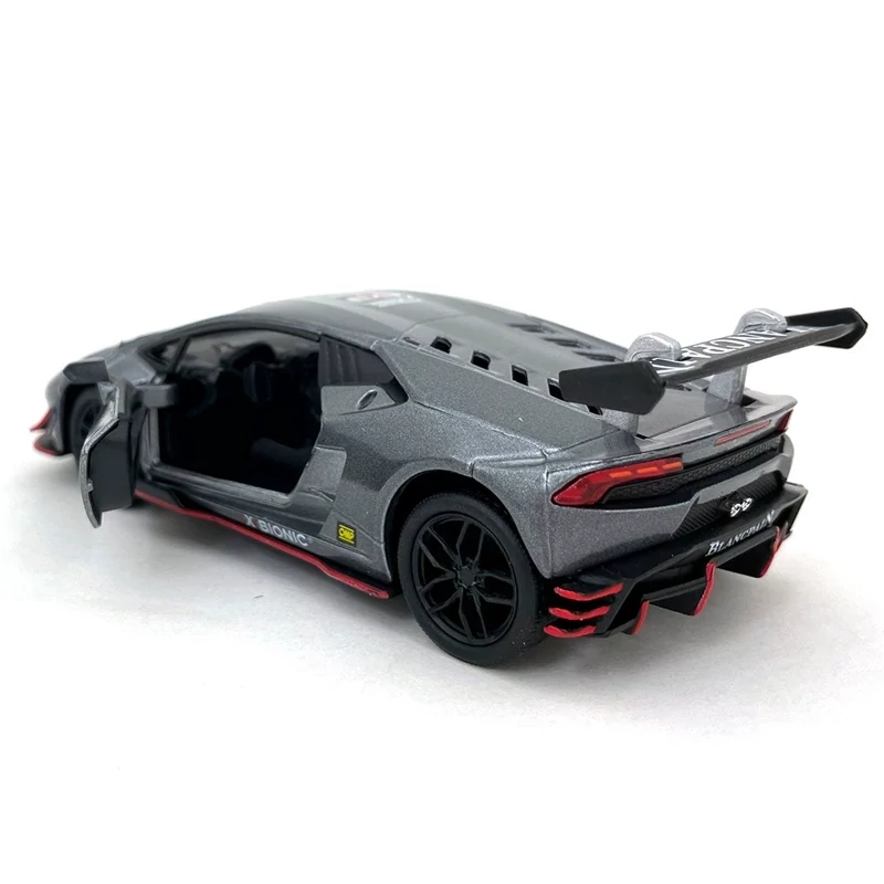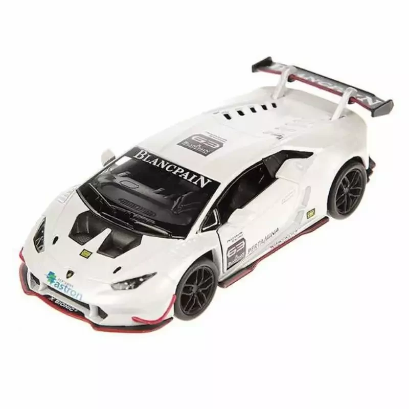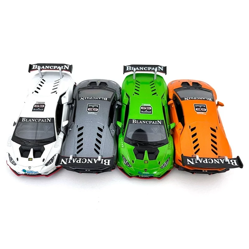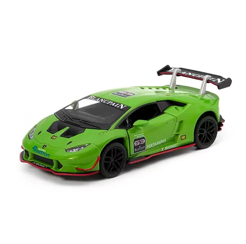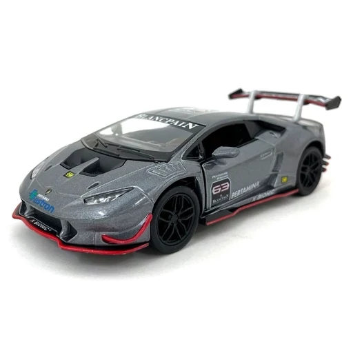 این ماکت بر اساس مدل مسابقهای Lamborghini Huracan LP620-2 Super Trofeo ساخته شده است؛ یکی از خاصترین و پرفورمنسترین خودروهای کمپانی لامبورگینی که ویژه رقابتهای بینالمللی طراحی و تولید شده است. بدنه ماکت با استفاده از فلز دایکست (Die-Cast) ساخته شده تا علاوه بر استحکام بالا، وزن و حس واقعی یک خودروی اسپرت پیشرفته را القا کند. طراحی تیز و خطوط آیرودینامیک بدنه، از سپر جلو تا اسپویلر عقب، همگی با دقت فوقالعاده بازسازی شدهاند تا حس تماشای یک سوپراسپرت ویژه مسابقات GT را منتقل کند.