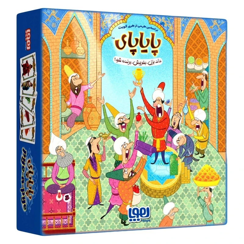 جعبه بازی شامل کارت کالاها، کارتهای امتیاز، و بعضی کارتهای ویژهست که مسیر رو جذابتر میکنن. طراحی کارتها در پایاپای روشن، رنگارنگ و گویاست، به طوری که حتی از فاصله زیاد نوع کالا رو تشخیص میدید. کیفیت چاپ بالا و روکش مقاوم باعث میشه بارها و بارها با خیال راحت بازی کنید بدون اینکه کارتها آسیب ببینن.