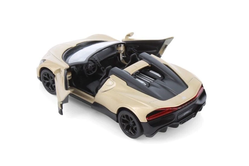 ماکت بوگاتی میسترال کینزمارت (Bugatti Mistral Kinsmart) 1:36 با توجه به طراحی زیبای خودروی اصلی، به خوبی توانسته است جزئیات دقیق و ظرافتهای خاص این خودرو را به نمایش بگذارد. از جلوپنجرهی معروف بوگاتی گرفته تا خطوط بدنه و اسپویلر عقب، تمامی این جزئیات با دقت و ظرافت در ماکت شبیهسازی شدهاند. رنگآمیزی دقیق و استفاده از مواد با کیفیت، باعث شده است این ماکت بسیار چشمنواز و جذاب به نظر برسد.