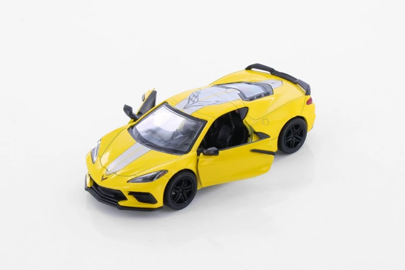 ماکت ماشین فلزی شورولت کوروت 2021 کینسمارت، بازسازی بینقص سوپراسپرت آمریکایی در ابعادی کوچک، با طراحی شکیل و واقعی.
