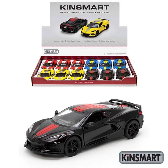 ماکت ماشین فلزی شورولت کوروت 2021 کینسمارت، بازسازی بینقص سوپراسپرت آمریکایی در ابعادی کوچک، با طراحی شکیل و واقعی.