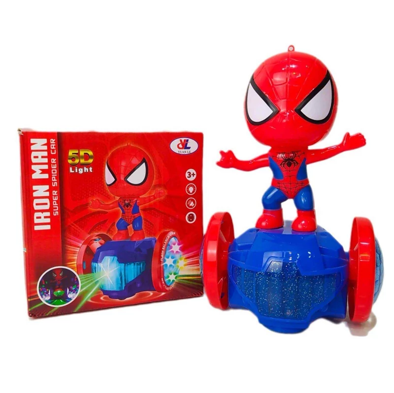 اسباببازی اسپایدرمن اسکوتر سوار را روشن کنید و آن را روی سطح صاف قرار دهید تا با پخش موسیقی و حرکتهای متنوع کودکان را سرگرم کند. مناسب برای استفاده در خانه یا محیطهای بازی.