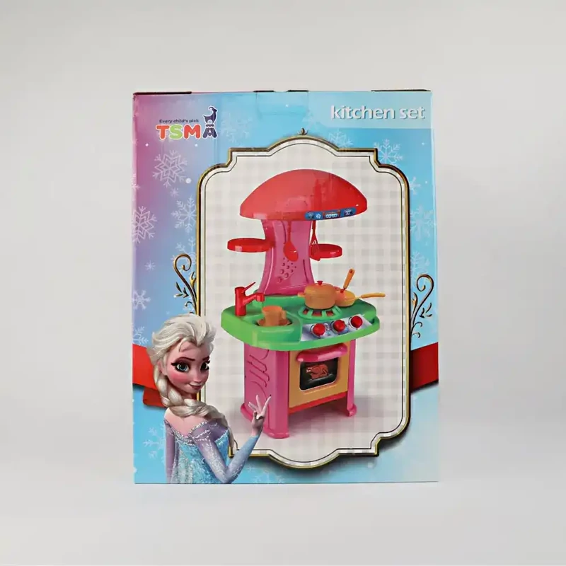 ابعاد این ست با طول ۳۸ سانتیمتر، عرض ۲۷ سانتیمتر و ارتفاع ۴۹ سانتیمتر کاملاً استاندارد و مناسب اتاق کودک یا فضای بازی خانگی طراحی شده است. اندازه قطعات ظرف و ظروفها، اجاقها و لوازم جانبی کاملاً متناسب با دستان کوچک کودکان است تا آنان به راحتی بتوانند با آنها بازی کنند. ظاهر رنگارنگ و طراحی فانتزی بر اساس انیمیشن محبوب فروزن (Elsa) جذابیت این محصول را چند برابر کرده است و برای دختر بچهها و کودکانی که شخصیت السا را دوست دارند، انتخابی ایدهآل به شمار میرود.
