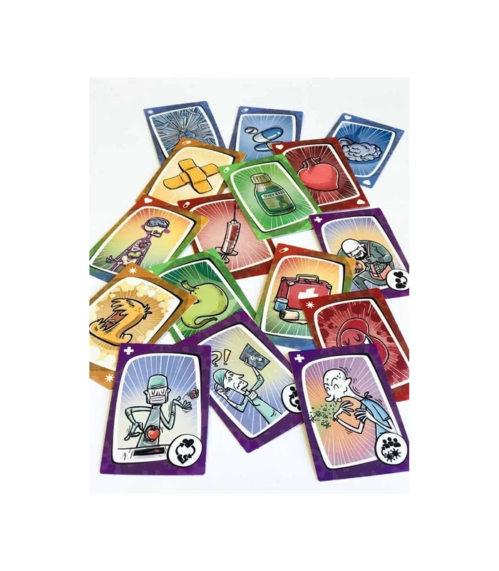 فرض کنید چهار نفره بازی میکنید و فقط یک اندام تا برد فاصله دارید. در همین لحظه نفر کناریتان یک کارت ویروس رنگ همان عضو را روی میز شما میگذارد و صدای خنده جمع بلند میشود. حالا شما باید بین درمان ویروس یا تلاش برای گرفتن عضو جدید انتخاب کنید، اما در همین حین نفر بعدی با یک واکسن از خودش دفاع میکند و بازی به شکل غیرقابل پیشبینی ادامه پیدا میکند. این لحظات غافلگیرکننده بخشی از جذابیت دائمی بازی ویروس هستند.