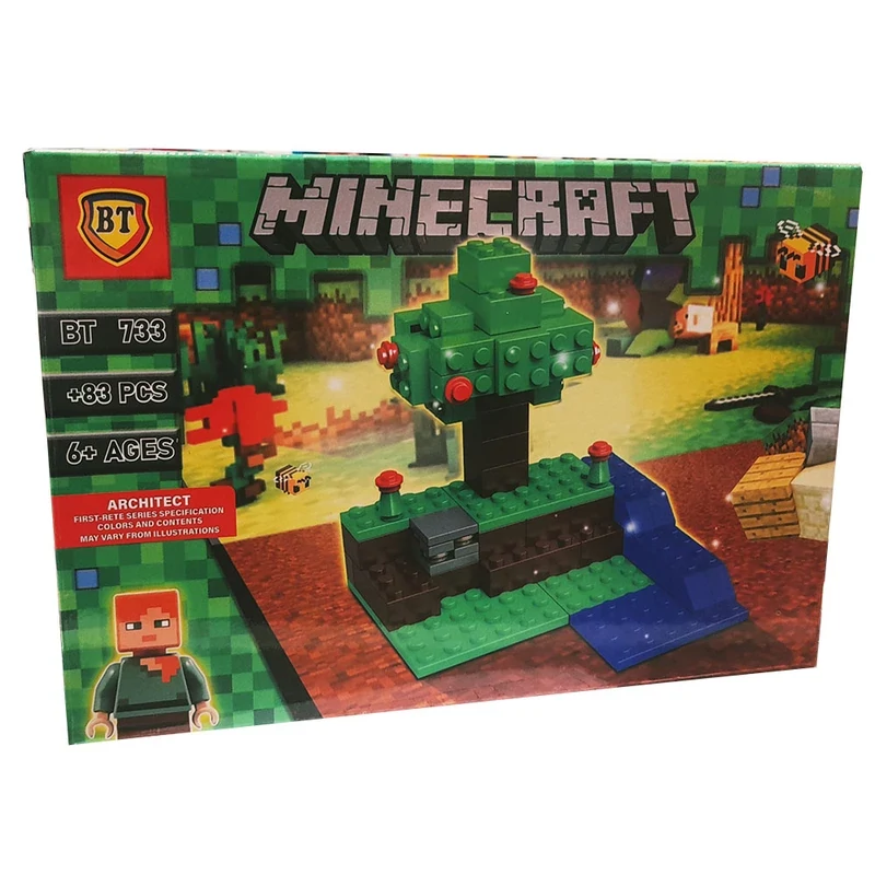 لگو ماینکرافت برند BT کد 733 طراحی شده است تا شخصیتها، سازهها و محیطهایی را که در بازی ماینکرافت موجود است، شبیهسازی کند. این محصول به کودکان اجازه میدهد که شخصیتها و بخشهایی از دنیای ماینکرافت را در دنیای واقعی و بهطور ملموس بسازند و تجربهای مشابه بازی را بهدست آورند.