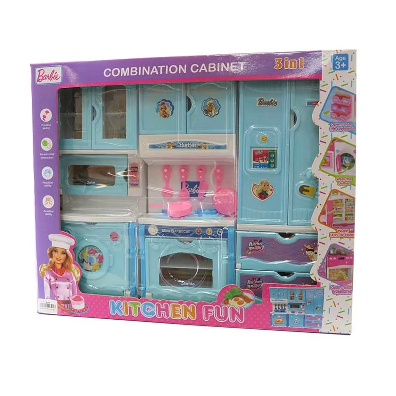 سرویس 3 تکه آشپزخانه اسباب بازی باربی یک محصول جذاب و آموزنده برای کودکان است که شامل آشپزخانه، یخچال و لباسشویی میباشد. این اسباب بازیها به کودکان کمک میکند تا در حالی که بازی میکنند، مفاهیم آشپزی و شستشوی لباسها را به شکل عملی فرا بگیرند.