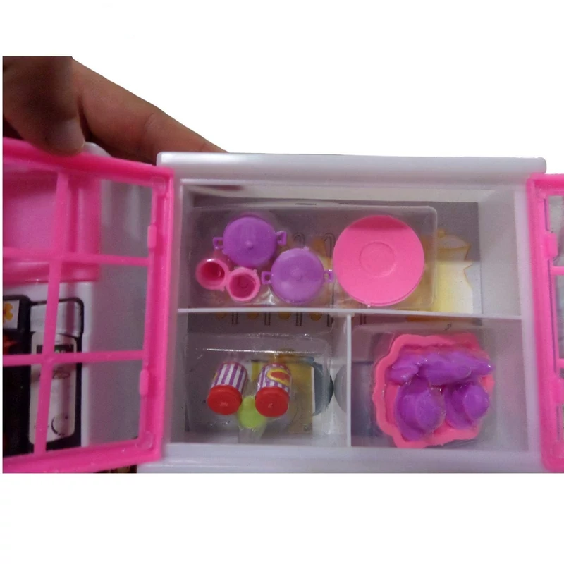 یخچال کوچک این ست اسباب بازی با طراحی واقعگرایانه، به کودکان امکان میدهد تا مواد غذایی اسباببازی خود را درون آن قرار دهند و بازیهای خلاقانهای را تجربه کنند.