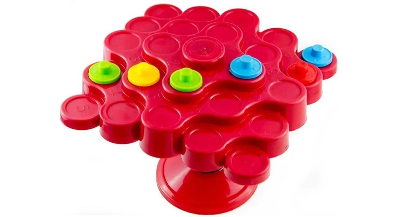 اما دقت کنید ! هر چه مهره های بیشتری به برج اضافه می شوند ، صفحه شروع به چرخیدن ، کج شدن و لغزیدن می کند …چنانچه یک ردیف ۵ تایی را کامل کردید ، میتوانید بر روی مهره های قبلی نیز مهره اضافه کنید (۴ مهره یا بیشتر ) شما می توانید امتیازات بیشتری کسب نمایید ! این بازی تعادلی مفرح برای تمام اعضای خانواده است.