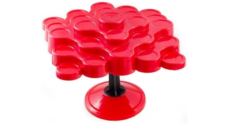 اما دقت کنید ! هر چه مهره های بیشتری به برج اضافه می شوند ، صفحه شروع به چرخیدن ، کج شدن و لغزیدن می کند …چنانچه یک ردیف ۵ تایی را کامل کردید ، میتوانید بر روی مهره های قبلی نیز مهره اضافه کنید (۴ مهره یا بیشتر ) شما می توانید امتیازات بیشتری کسب نمایید ! این بازی تعادلی مفرح برای تمام اعضای خانواده است.