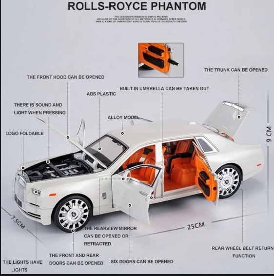 ویژگیها و مشخصات فنی ماکت ماشین فلزی Rolls Royce Phantom برند XLG