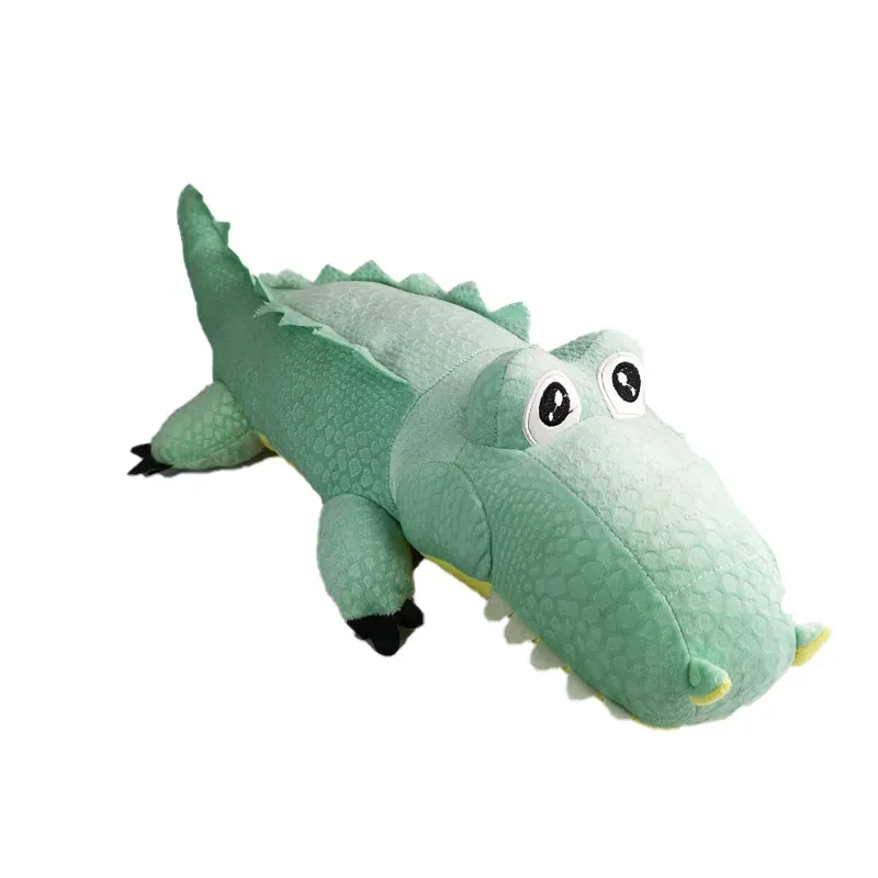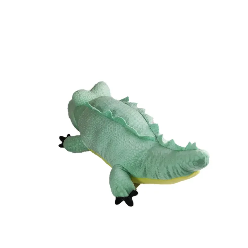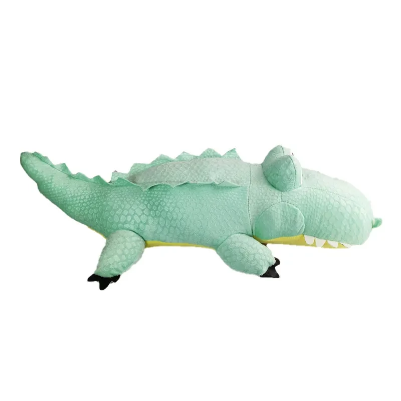 روکش چرمی مصنوعی: سطح بیرونی این عروسک از جنس چرمی یا چرمی مصنوعی با کیفیت ساخته شده است که یادآور پوست واقعی تمساح است. این ماده هم دوام بالایی دارد و هم برای استفاده ایمن کودکان مناسب است.