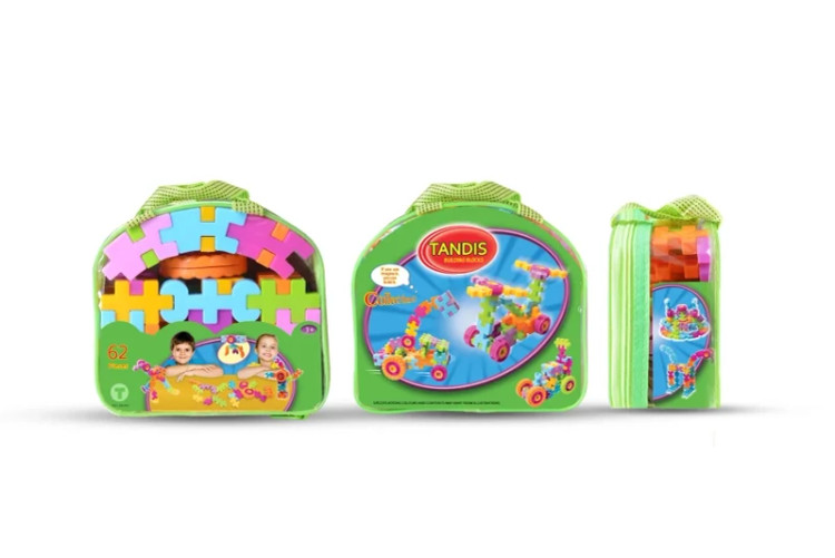 این مجموعه شامل 62 قطعه مختلف است که از مواد با کیفیت و مقاوم ساخته شدهاند. این قطعات دارای اشکال و اندازههای متنوعی هستند که به کودکان اجازه میدهد تا خلاقیت خود را در ساخت و سازهای مختلف به کار گیرند.