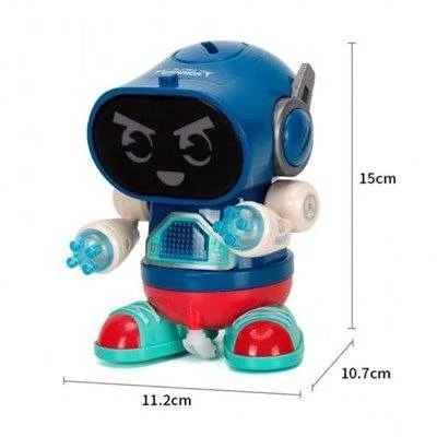 ربات اسباب بازی موزیکال رقصنده Robot Dancing، یک هدیه تولد فوق العاده برای بچه های عاشق اسباب بازی و رباتیک .زمانی که شما این اسباب بازی را روشن می کنید، ربات شروع به آواز خواندن و رقصیدن می کند.بر روی شکم و پای ربات رقص نور رنگی قرار دارد که در محیط های تاریک تصویر زیبایی را می سازد. همچنین چشم ها و دهان این ربات با روشن شدنش نیز روشن می شود.