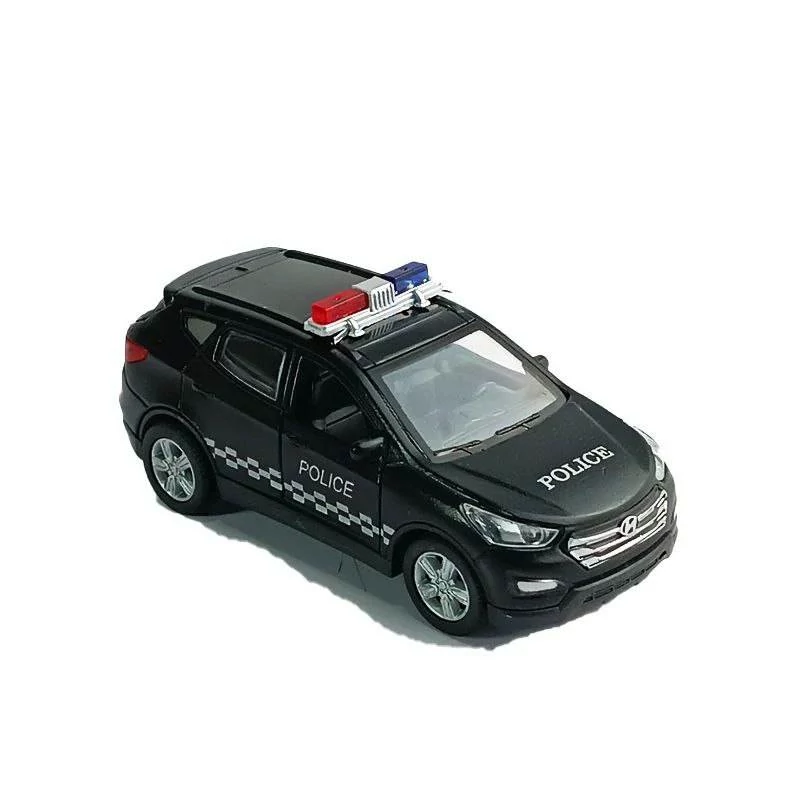 ماشین فلزی سانتافه پلیس در رنگ های مشکی و سفید از طراحی با جزئیات بالا و دقیق ساخته شده جنس بدنه آن از فلز می باشد