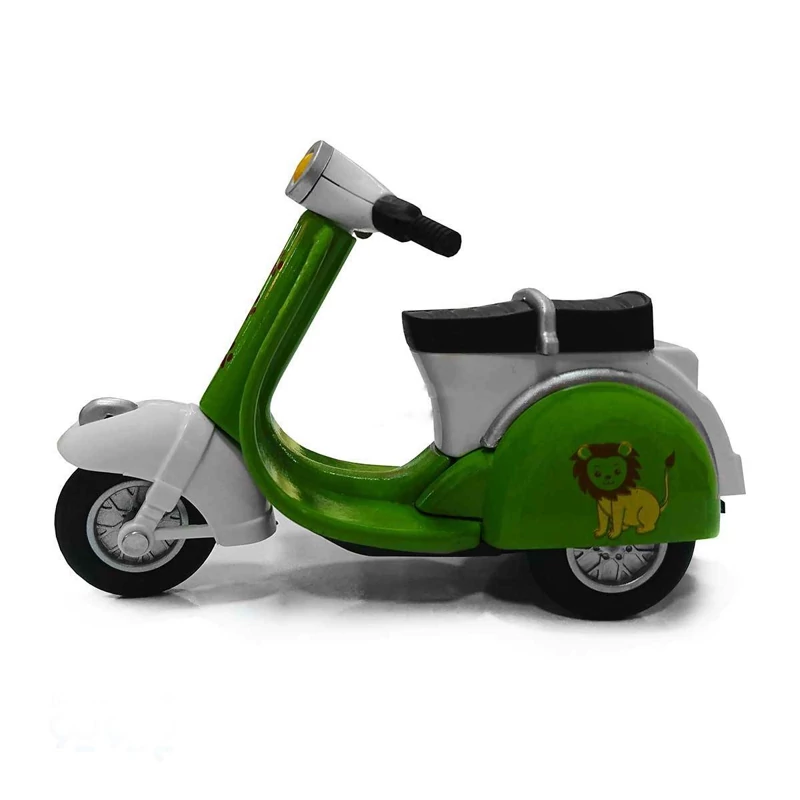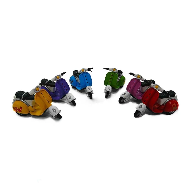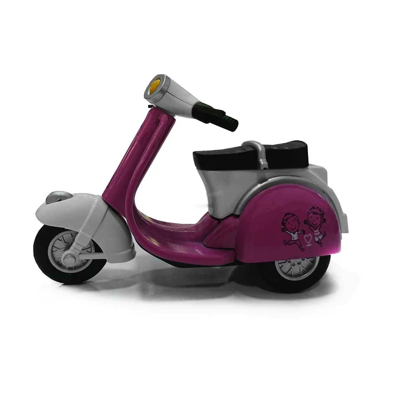 موتور فلزی وسپا طاها تویز:این موتور های بامزه یکی از موتور های مورد علاقه بچه ها می باشند که داشتن یک نمونه کوچک از آن هم بچه هارا خوشحال می کند. روی بدنه این موتور طرح های متفاوتی است و همچنین رنگبندی متنوعی نیز دارد که شامل آبی کم رنگ،آبی پررنگ،زرد،سبز،قرمز و صورتی می باشد.این اسباب بازی قابلیت حرکت عقب کش دارد که یکی از ویژگی های جذاب برای کودکان می باشد.