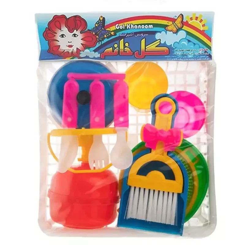 وسایل این سرویس در اندازه کوچک طراحی شدهاند و کاملاً متناسب با دستان کودکان هستند. رنگهای شاد و زنده مانند صورتی و آبی، جذابیت خاصی به این اسباببازی دادهاند که توجه هر کودکی را به خود جلب میکند.
