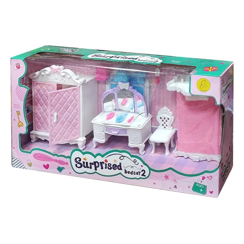 این مجموعه شامل یک تخت خواب زیبا با طراحی دقیق و جزئیات چشمنواز است. کودکان میتوانند عروسکهای خود را روی تخت قرار داده و نقشآفرینی کنند. تخت خواب دارای پتو و بالشهای کوچک و رنگارنگ است که تجربه بازی را برای کودکان لذتبخشتر میکند.