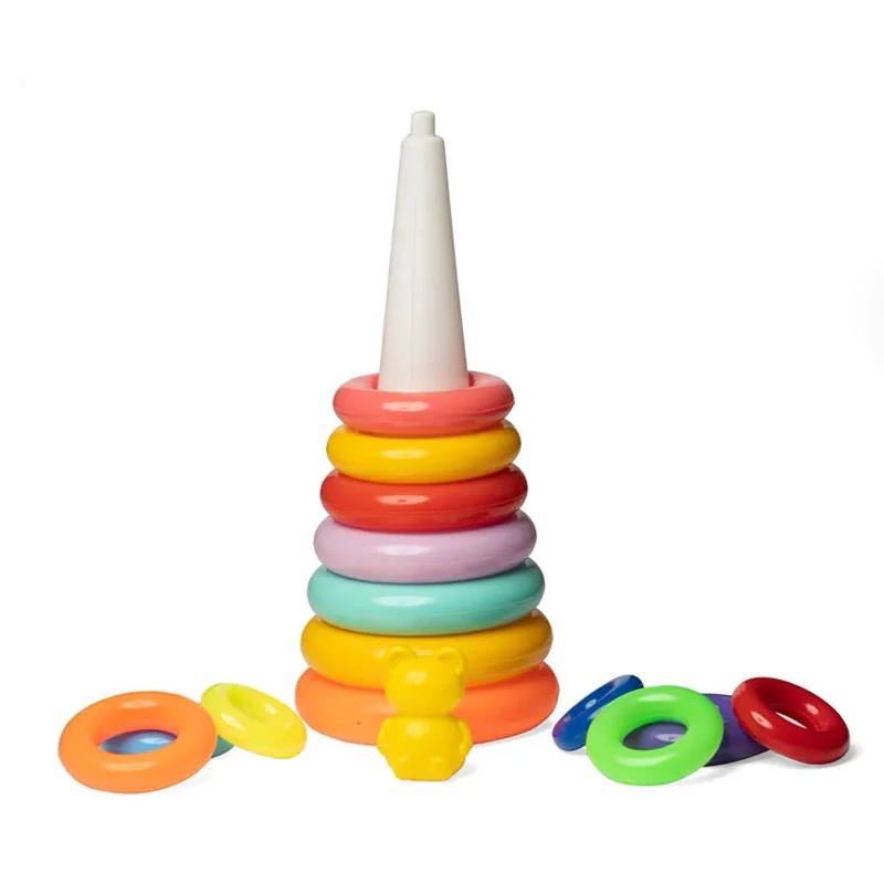 تقویت تفکر منطقی و حل مسئله: هنگام بازی با این اسباب بازی، کودک باید مفاهیم پایهای مانند اندازه، ترتیب و هماهنگی را یاد بگیرد. کودک باید تشخیص دهد که ترتیب صحیح حلقهها چگونه است و کدام حلقه در موقعیت درست قرار میگیرد. این فعالیتهای فکری به تقویت مهارتهای حل مسئله و تفکر منطقی کودک کمک میکند.