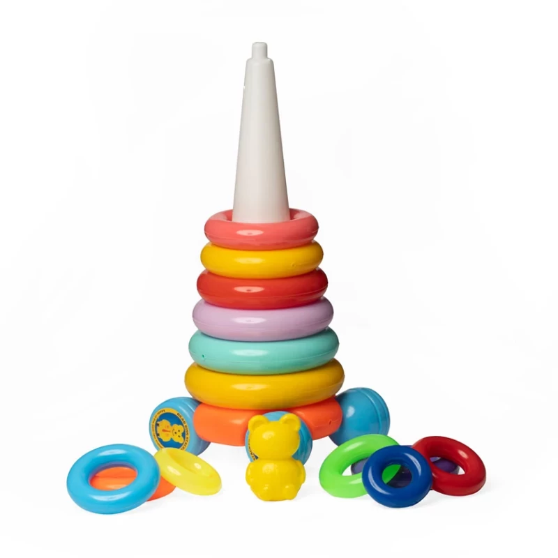 تقویت تفکر منطقی و حل مسئله: هنگام بازی با این اسباب بازی، کودک باید مفاهیم پایهای مانند اندازه، ترتیب و هماهنگی را یاد بگیرد. کودک باید تشخیص دهد که ترتیب صحیح حلقهها چگونه است و کدام حلقه در موقعیت درست قرار میگیرد. این فعالیتهای فکری به تقویت مهارتهای حل مسئله و تفکر منطقی کودک کمک میکند.