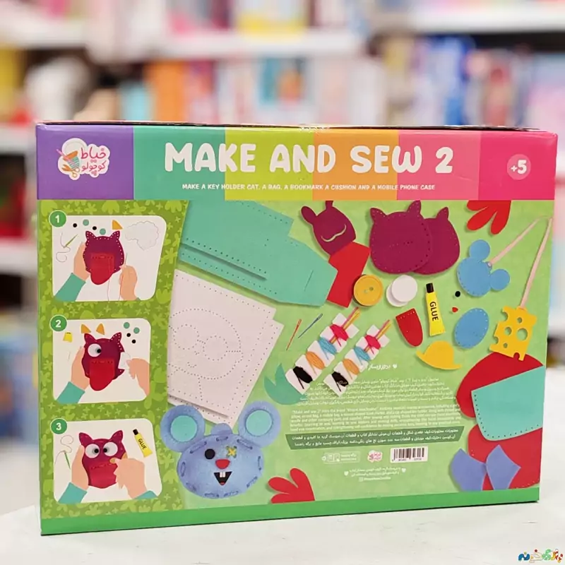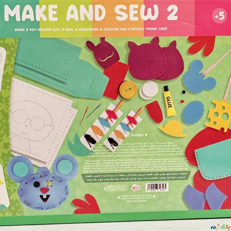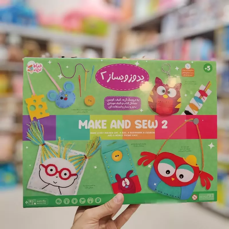 محصول "بدوز و بساز 2 از برند خیاط کوچولو حاوی وسایل دوختنی جداگانه کوسن، دخترک، کیف جغدی، کیف موبایل، نشانگر کتاب موشی شکل و جاکلیدی گربه ای می باشد. به همراه نخ و سوزن و سایر قطعات و لوازم مورد نیاز کودک میتواند بعد از دوختن و درست کردن آنها، از آنها بصورت کاربردی استفاده بکند. فواید یادگیری دوخت و دوز یادگیری دوخت دکمه و عروسک سازی تقویت حرکات ظریف دست و هماهنگی چشم و دست و تقویت اعتماد بنفس با درست کردن وسایل بازی شخصی یادگیری دوخت وسایل کاربردی