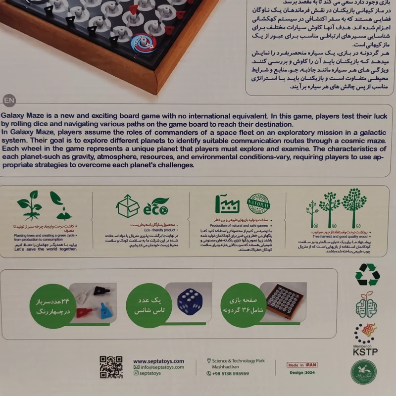 بازی رومیزی ماز کیهانی یک بازی جدید و جذاب است که هیچگونه نمونه داخلی و خارجی ندارد در این بازی فرد با انداختن تاس شانس خود را در طول بازی امتحان میکند و با مسیرهای مختلفی که در زمین بازی وجود دارد سعی میکند تا به مقصد برسد.