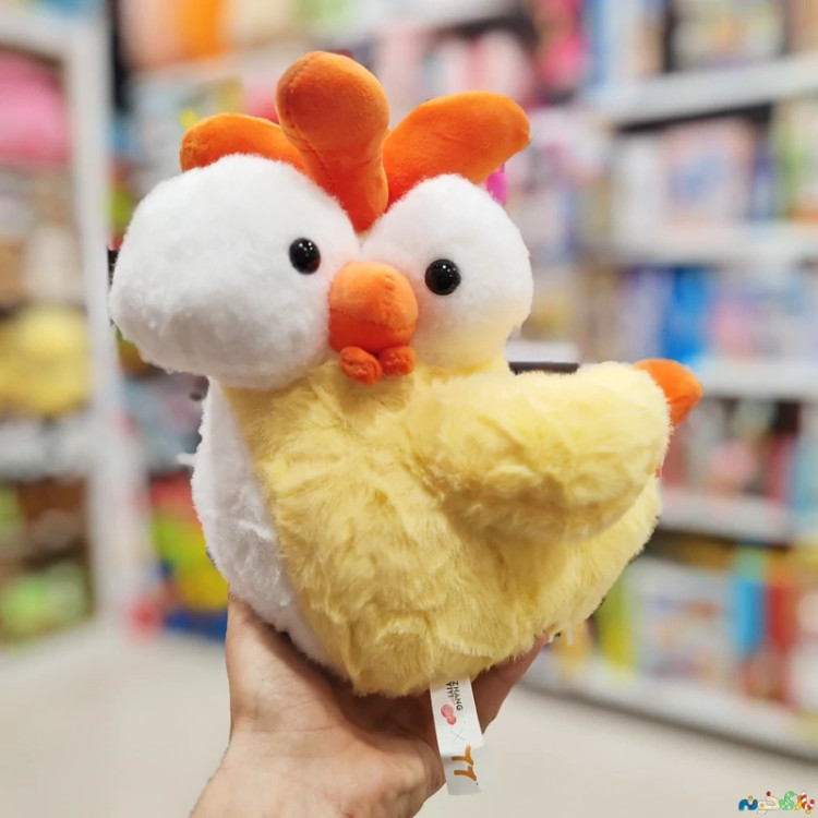عروسک پولیشی مرغ چشم درشت اورجینال زرد وارداتی28در23سانت
