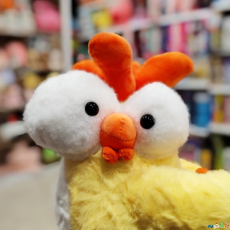عروسک پولیشی مرغ چشم درشت اورجینال زرد وارداتی28در23سانت