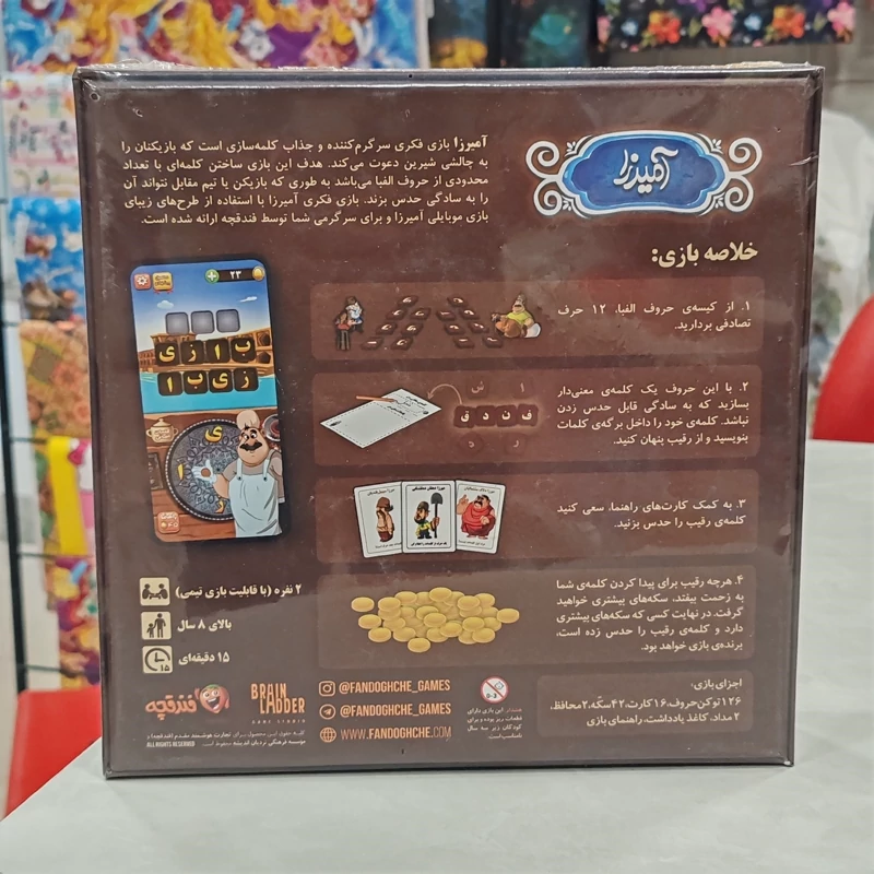 آمیرزا بازی فکری سرگرم کننده و جذاب کلمه سازی است که بازیکنان را به چالشی شیرین دعوت میکند هدف این بازی ساختن کلمه ای با تعداد محدودی از حروف الفبا می باشد به طوری که بازیکن یا تیم مقابل نتواند آن را به سادگی حدس بزند بازی فکری آمیرزا با استفاده از طرح های زیبای بازی موبایلی آمیرزا و برای سرگرمی شما توسط فندقچه ارائه شده است.