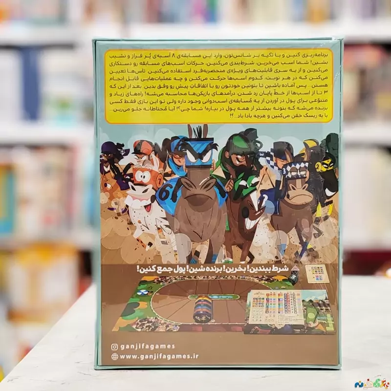 برنامه ریزی کنین و با تکیه بر شانستون وارد این مسابقه ی 8 آسبه ی پر فراز و نشیب بشین! شما اسب میخرین شرط بندی میکنین حرکات اسبهای مسابقه رو دستکاری میکنین و از یه سری قابلیتهای ویژه ی منحصربه فرد استفاده میکنین تاس ها تعیین میکنن که در هر نوبت کدوم اسبها حرکت میکنن و چه عملیاتهایی قابل انجام هستن... پس آماده باشین تا بتونین خودتون رو با اتفاقات پیش رو وفق بدین بعد از این که 3 تا از اسب ها از خط پایان رد شدن درآمدهای بازیکنها محاسبه میشه راه های زیاد و متنوعی برای پول در آوردن از به مسابقه ی اسب دوانی وجود داره ولی تو این بازی فقط کسی برنده میشه که بتونه بیشتر از همه پول در بیاره شما چی؟ آیا محتاطانه جلو میرین... یا به ریسک خفن میکنین و هرچه بادا باد؟!