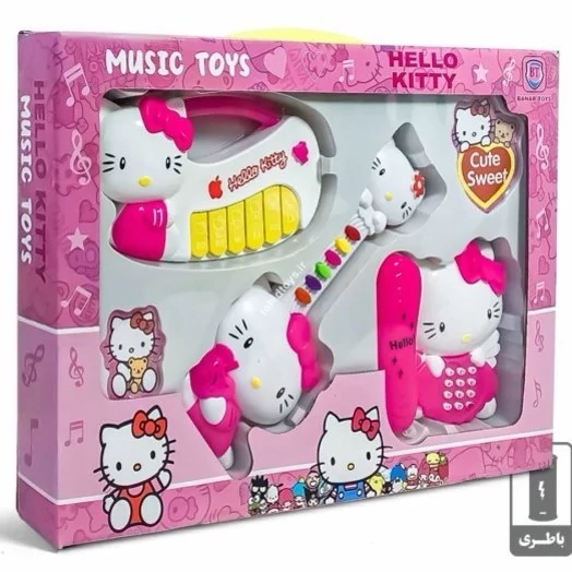 *توضیحات محصول: اسباب بازی 3 تکه کیتی موزیکال شامل پیانو، گیتار و تلفن باتریخور صدا دار*