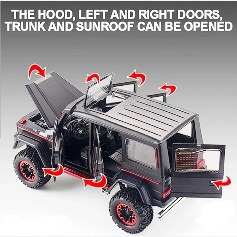 توضیحات محصول: اسباب بازی ماکت فلزی بنز جی کلاس باراباس درب بازشو چراغ دار