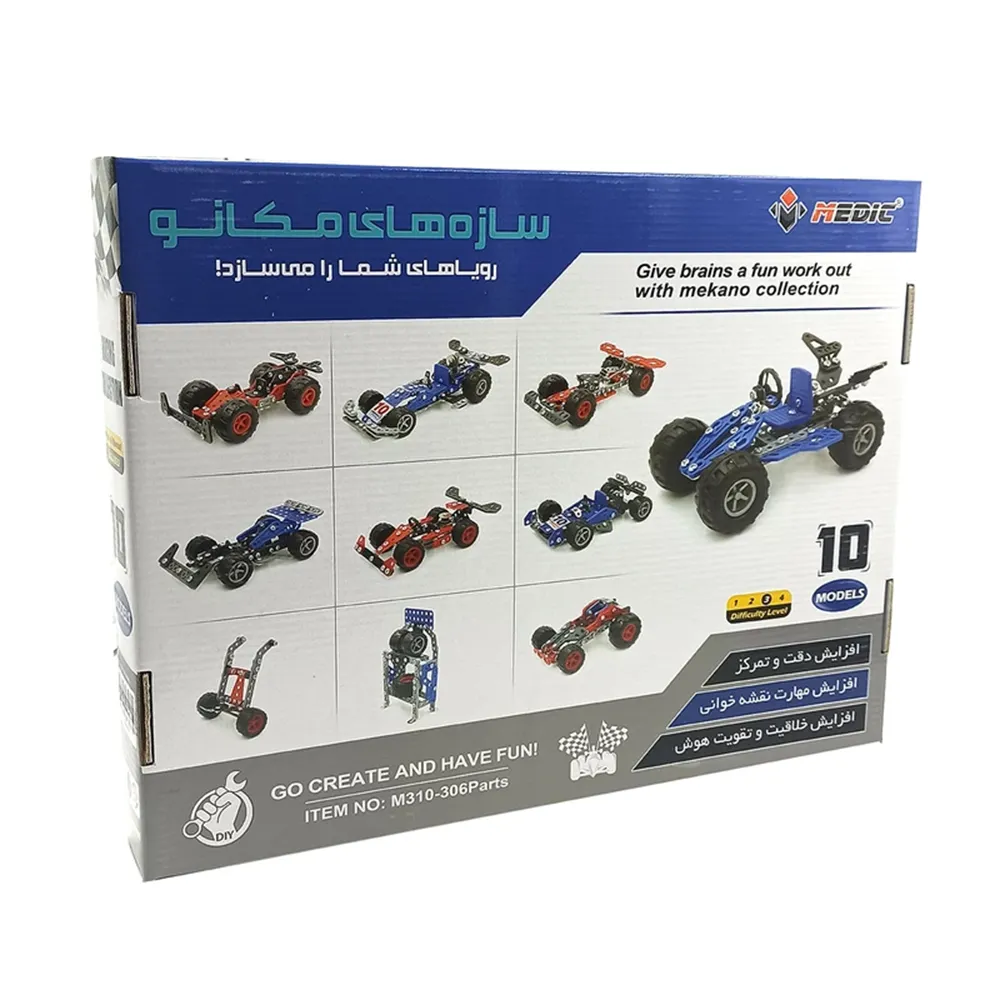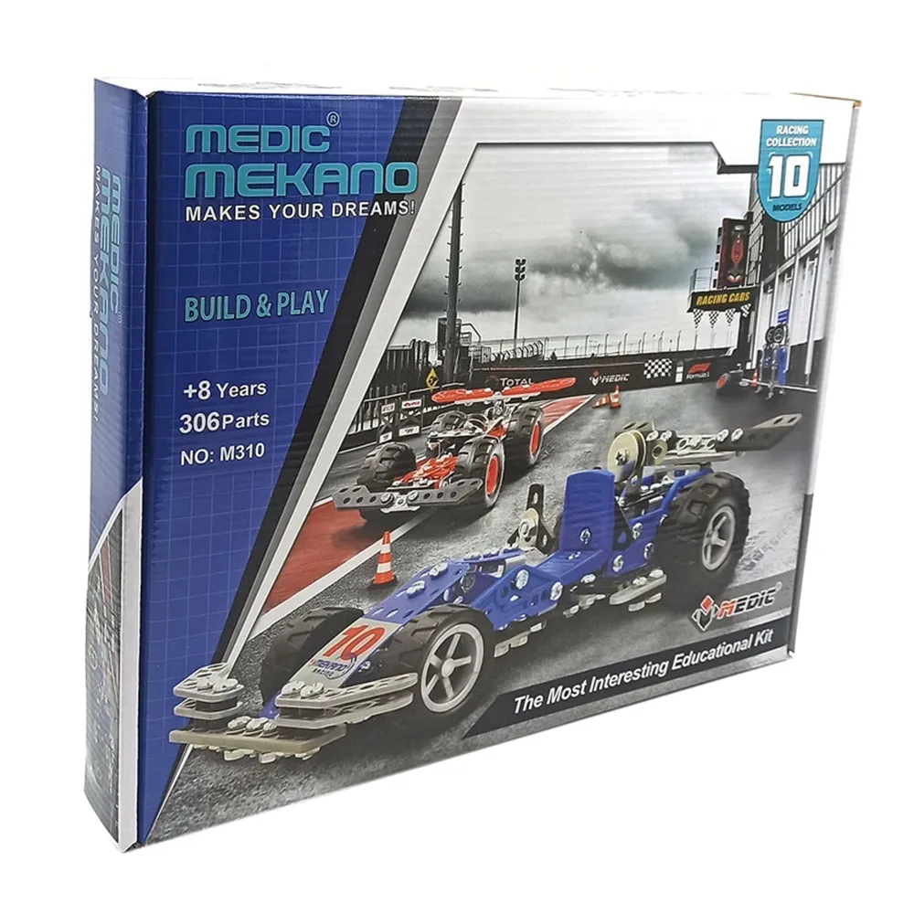 با ساختنی فلزی مکانو مدل M310 که از 306 قطعه تشکیل شده است. می توانید با یک پیچ گوشتی و آچار خلاقیت خود را به چالش بکشید و 10 مدل ماشین فرمول یک بسازید. این سازه های فلزی با ترکیبی از صنعت و خلاقیت فرزندان شما را به دنیای واقعی نزدیک تر می کند تا قادر باشند به کمک ابزار و قطعاتی که در اختیارشان قرار می گیرد هر آنچه در اطراف خود مشاهده می کنند را بسازند.