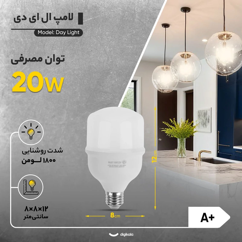 لامپ ال ای دی 20 وات پارت شید مدل Day Light پایه E27