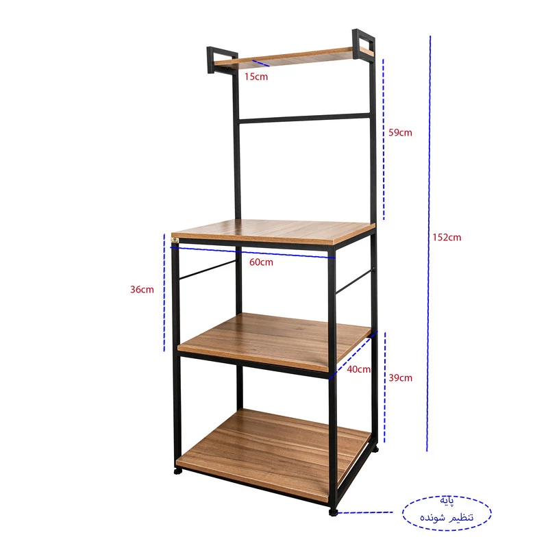 کافی بار چهار طبقه چینش . جنس بدنه این محصول از پروفیل 2 با جوش Co2 و بسیار مقاوم میباشد . رنگ بدنه کوره ای استاتیک ضد خش میباشد . تمامی عکس های این محصول عکس واقعی محصول چینش است و کالای تحویل مشتری هیچ تفاوتی با عکس ها ندارد . مناسب برای میز کافی بار در آشپزخانه یا پزیرایی و دفتر کار و محیط های اداری . جنس صفحه از MDF درجه یک تیسان میباشد . این محصول دارای پایه تنظیم شونده برای تراز کردن شلف در هر شرایطی است.