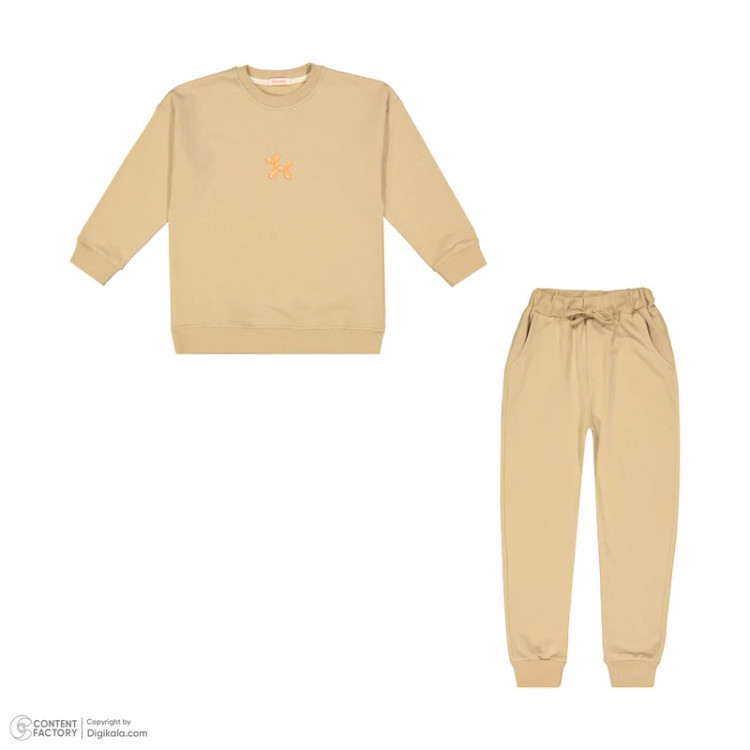 ست تیشرت آستین بلند و شلوار بچگانه مونسا مدل 4051 رنگ کرم