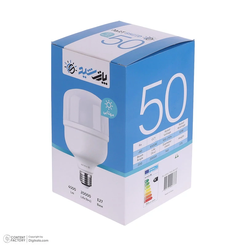برای روشن کردن فضاهای وسیع با نوری شفاف و کافی، لامپ ال ای دی 50 وات پارت شید مدل Day Light یک انتخاب مناسب و کارآمد است. این لامپ با بهرهگیری از فناوری LED، شدت روشنایی بالایی معادل ۴۵۰۰ لومن را با مصرف ۵۰ وات انرژی تولید میکند. این بازدهی خوب، آن را در رده مصرف انرژی A+ قرار میدهد و جایگزین مناسبی برای لامپهای پرمصرف قدیمی محسوب میشود.