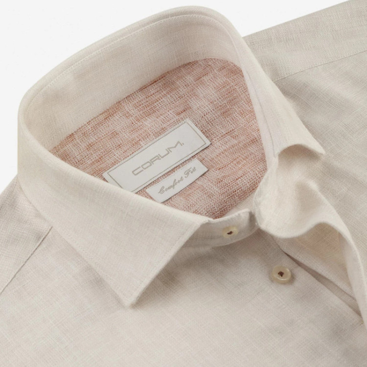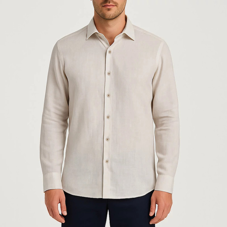 جزئیات: پیراهن مردانه آستین بلند-پارچه ترکیبی از الیاف پنبه و لینن-استایل Comfort-Fit-خنک و تنفس پذیر-آستین دو دکمه-ثبات رنگ در شستشو