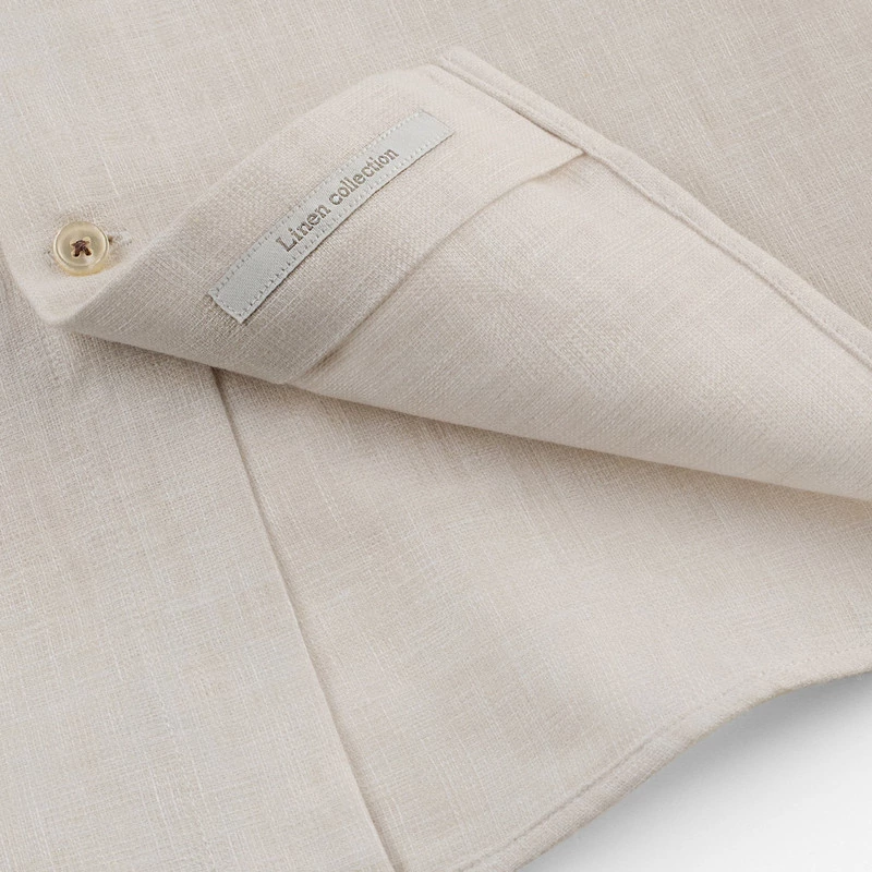 جزئیات: پیراهن مردانه آستین بلند-پارچه ترکیبی از الیاف پنبه و لینن-استایل Comfort-Fit-خنک و تنفس پذیر-آستین دو دکمه-ثبات رنگ در شستشو