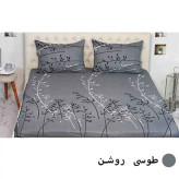 سرویس ملحفه دو نفره سه تکه مشتمل بریک عدد کاور کشدار تشک به همراه دو عدد روبالشتی است. در تار و پود پارچه این محصول نخ فیلامنت که موجب درخشندگی آن شده، استفاده شده است. بافت پارچه کجراه است که سبب میشود در عین لطافت استحکام بالایی داشته باشد. این محصول مناسب تختهای سایز استاندارد یعنی عرض 160سانتی متر و طول 200 سانتی متر است. اگر تخت شما قطر 20 متر داشته باشد علاوه بر پوشش قطر تشک مقداری از پارچه به زیر تشک میرود که این سبب زیبایی بیشتر تخت و جلوه بیشتر سرویس خوابتان میشود. سبک بودن آن موجب شده تا به رده محصولات پرطرفدار سرویس خواب بپیوندد. از دیگر ویژگی های این محصول می توان به1- به صرفه و بادوام 2-لطافت درعین استحکام 3-استفاده از کش پهن در رو تشکی اشاره نمود. شیوهی شستوشو صحیح این محصول به شرح زیر است: 1-حداکثر دمای آب 30 درجه سانتی گراد باشد 2-اصلا از پودرهای آنزیمدار استفاده نشود ، بهتر است که از مایع پارچههای مشکی (مشکین شوی) استفاده شود 4-از مواد سفید کننده استفاده نشود 5-رنگ های تیره جداگانه شسته شوند.