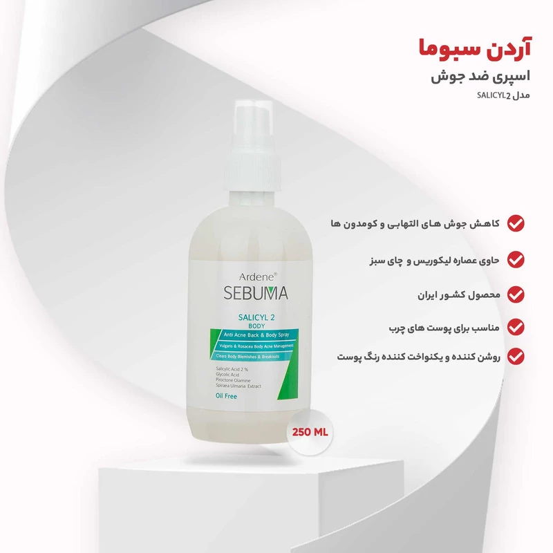 اسپری ضد جوش آردن سبوما مدل SALICYL2 حجم 250 میلی لیتر
