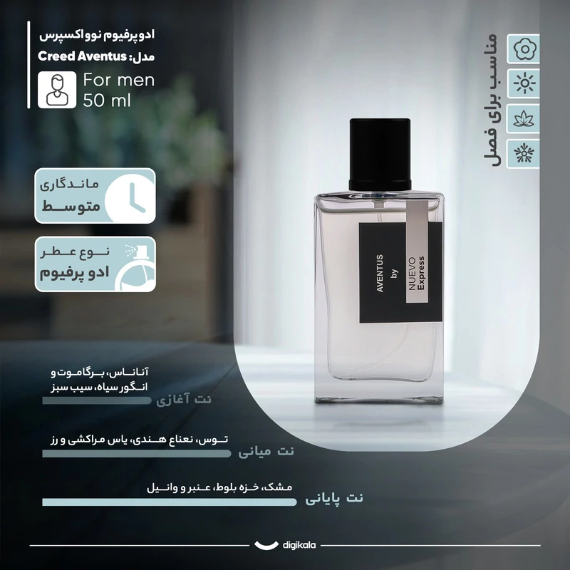 ادو پرفیوم مردانه نوو اکسپرس مدل Creed Aventus با رایحه خنک و تلخ حجم 50 میلی لیتر