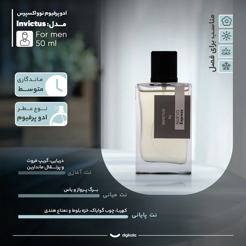 ادو پرفیوم مردانه نوو اکسپرس مدل Invictus با رایحه خنک و تلخ حجم 50 میلی لیتر