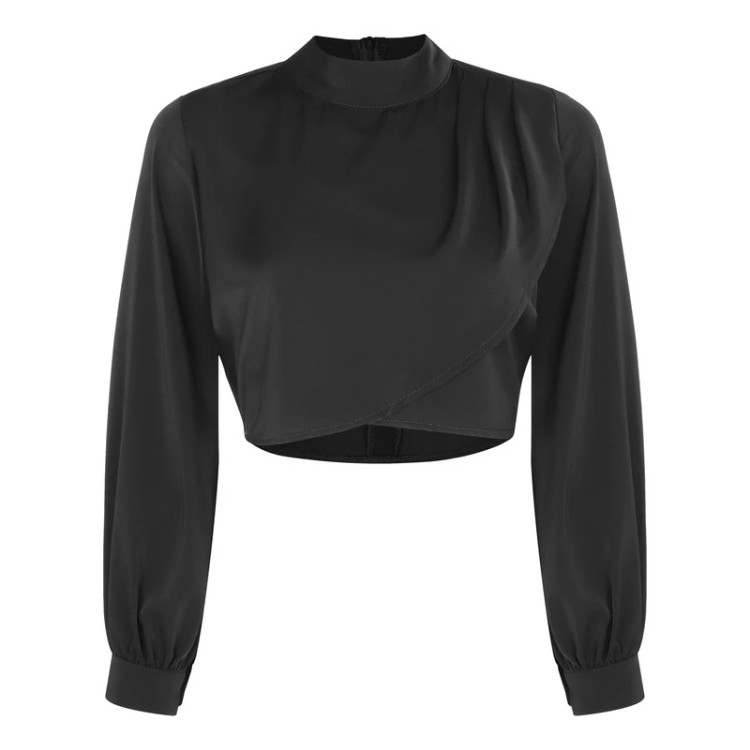 بلوز آستین بلند یقه ایستاده زنانه نیزل مدل 1175 رنگ مشکی