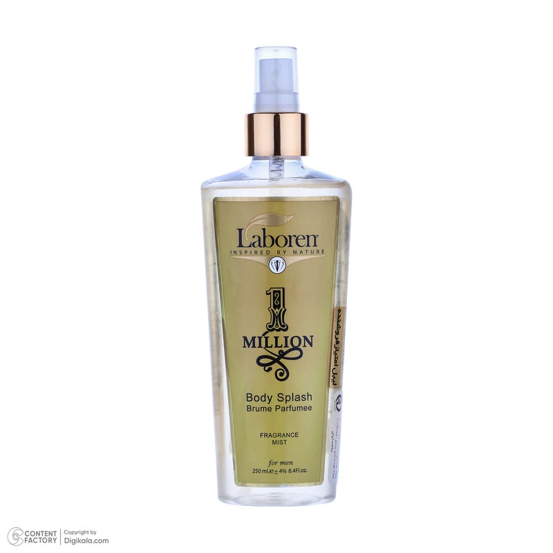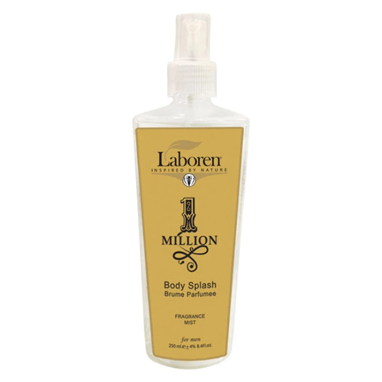 بادی اسپلش یا خوشبو کننده بدن، یکی از محصولات آرایشی بهداشتی است که این روزها به سبک زندگی (Life Style) اضافه شده است. میتوان آن را بعد از استحمام، قبل و بعد از ورزش و برای افزایش جذابیت استفاده کرد. بادی اسپلشهای مردانه و زنانه لابورن با رایحه عطرهای معروف دنیا، جذابیت شما را بیشتر میکنند. این محصول دارای پروانه بهداشتی ساخت شماره ۲۴۵۵/ظ/۵۶ است. بادی اسپلش مردانه وان میلیون لابورن، رایحه عطر وان میلیون از پاکو رابان را دارد و حاوی روغنها و مواد رطوبترسان قوی است. این ترکیبات علاوه بر از بین بردن بوی بد و کاهش تعریق، پوست را مرطوب، نرم و شفاف نگه میدارد. بادی اسپلش وان میلیون به صورت مایع روی بدن اسپری میشود و به دلیل عدم استفاده از گاز و مواد طبیعی، حساسیتزا نیست.