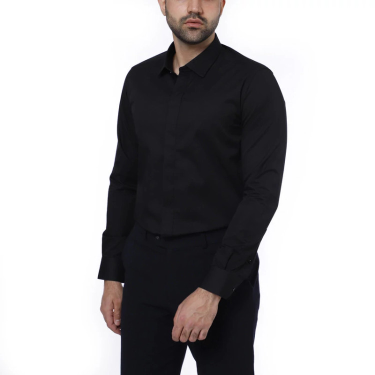 پیراهن آستین بلند یقه برگردان مردانه دیجی استایل اسنشیال مدل 07 رنگ مشکی