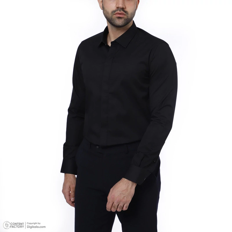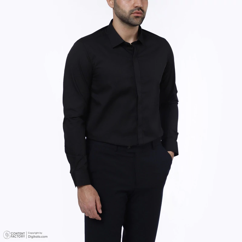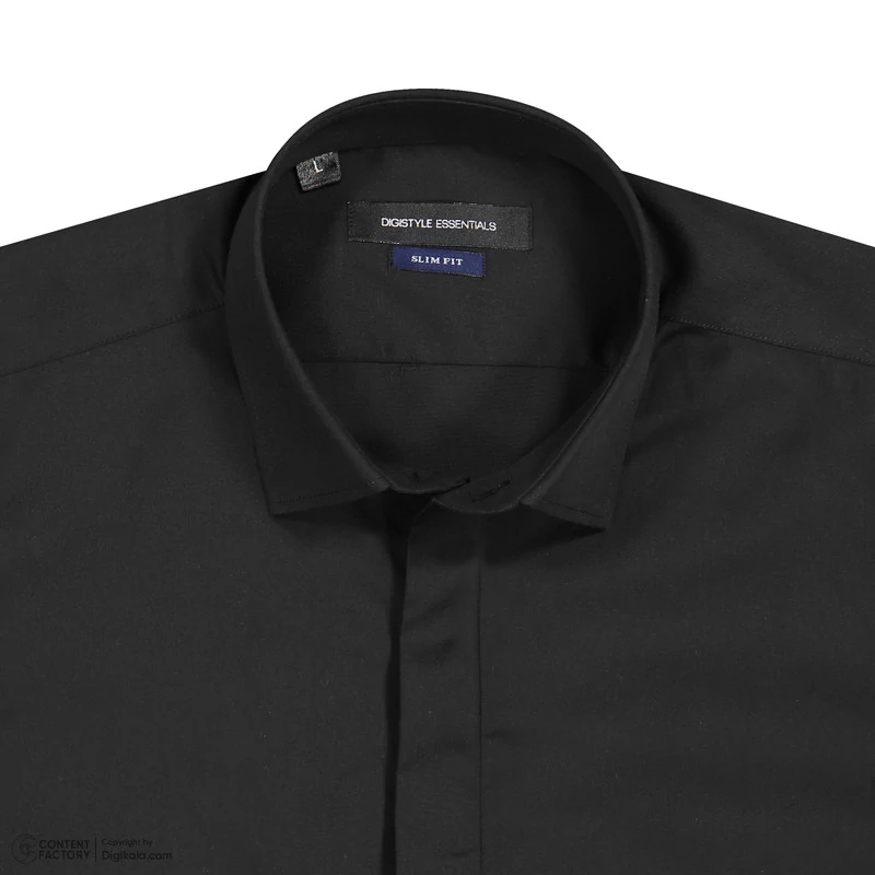 پیراهن آستین بلند یقه برگردان مردانه دیجی استایل اسنشیال مدل 07 رنگ مشکی